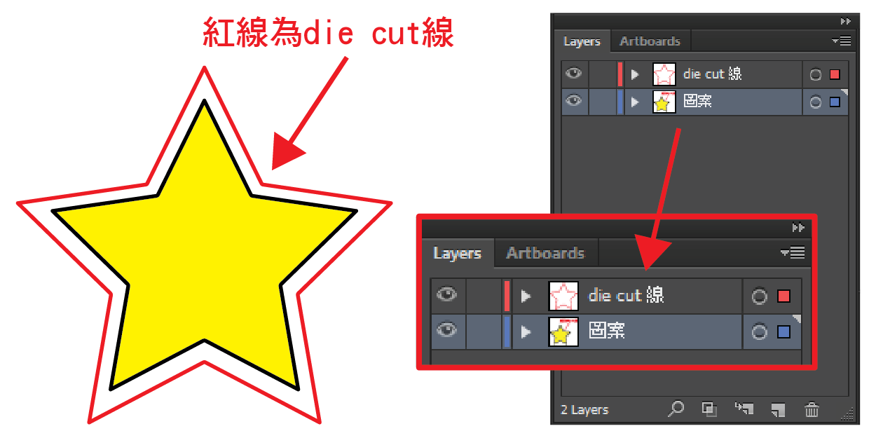 | 檔案格式(5) : | (i) 如設計要diecut,請於檔案建立新的圖層,並於此圖層繪畫diecut線。
